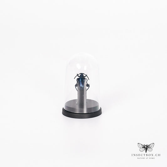 Glasglocke mit präparierten Schmetterlingen (Blau/Weiss)