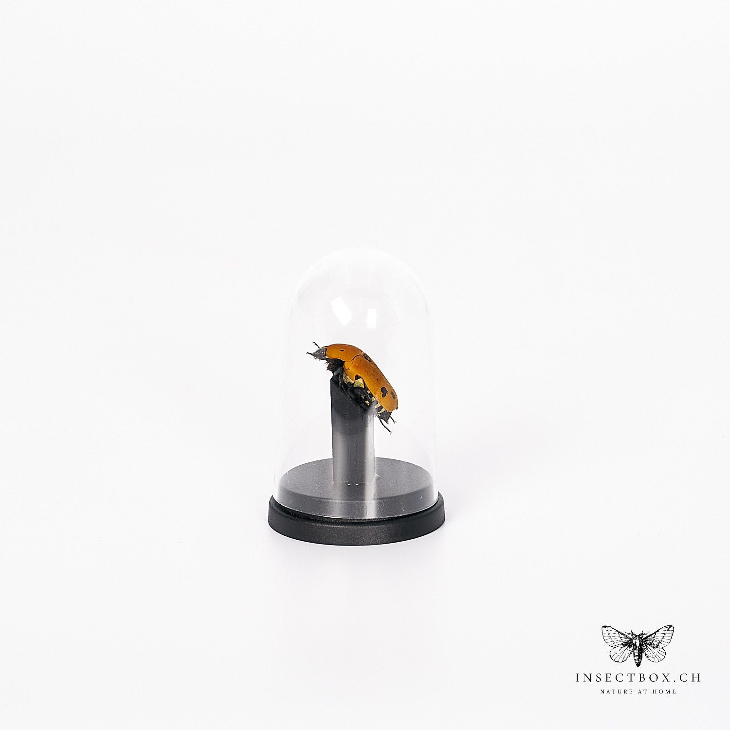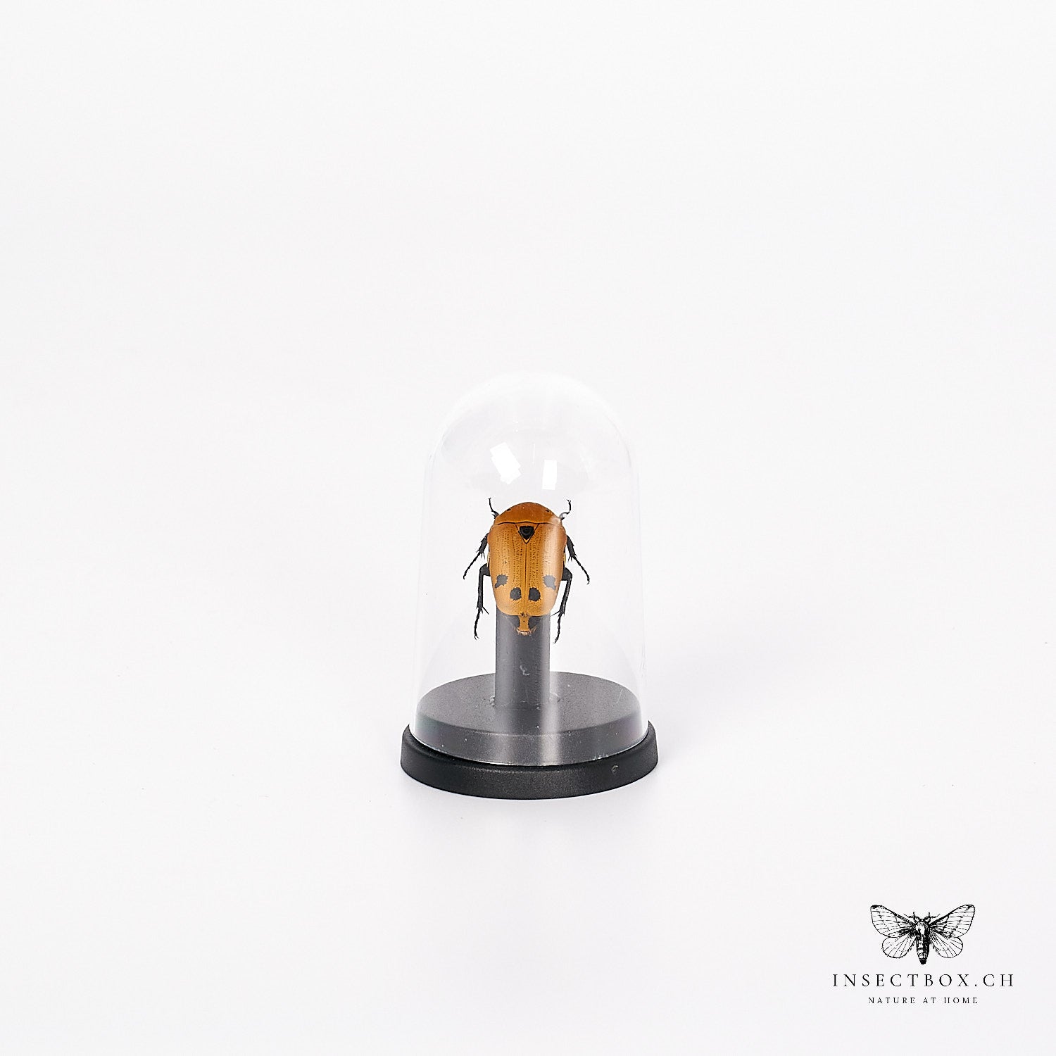 The African yellow scarab beetle is characterized by its striking yellow color, which makes it highly visible in its natural habitat. Its body is often robust and compactly built, typical of beetle species in this family. The males of this scarab beetle are usually slightly larger than the females and may have additional structures on their forelegs that play a role in mating.