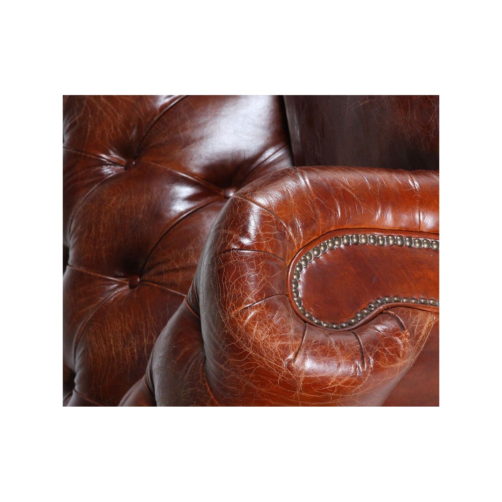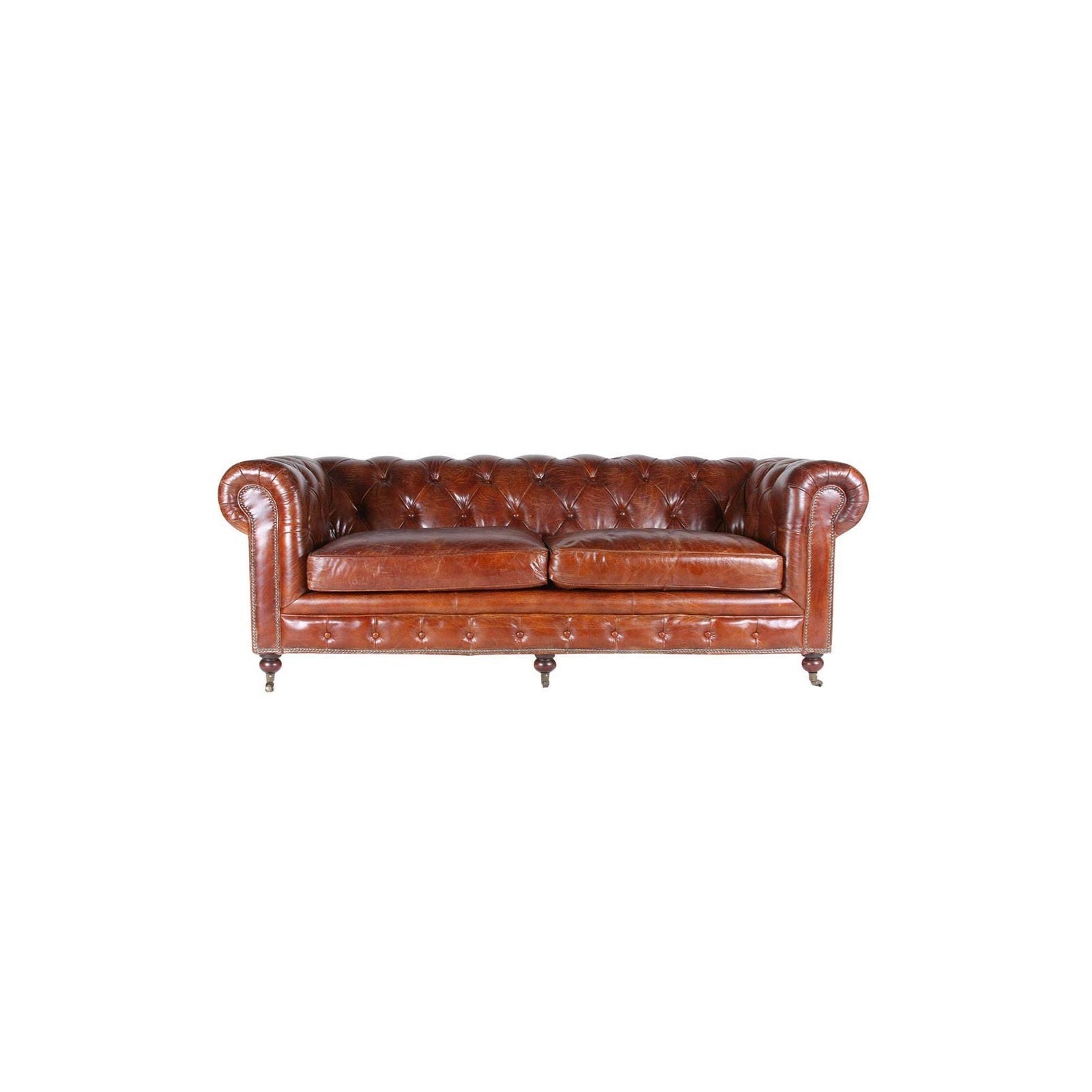 The 3 seater Chesterfield sofa made of cowhide in a timeless design is elegant and comfortable and will seduce you with its deep, round backrest and armrests. It fits into any interior and invites you to privileged moments of peace. Removable cushion (polyurethane foam/feather bag/feather). Rubberwood feet with brass wheels.