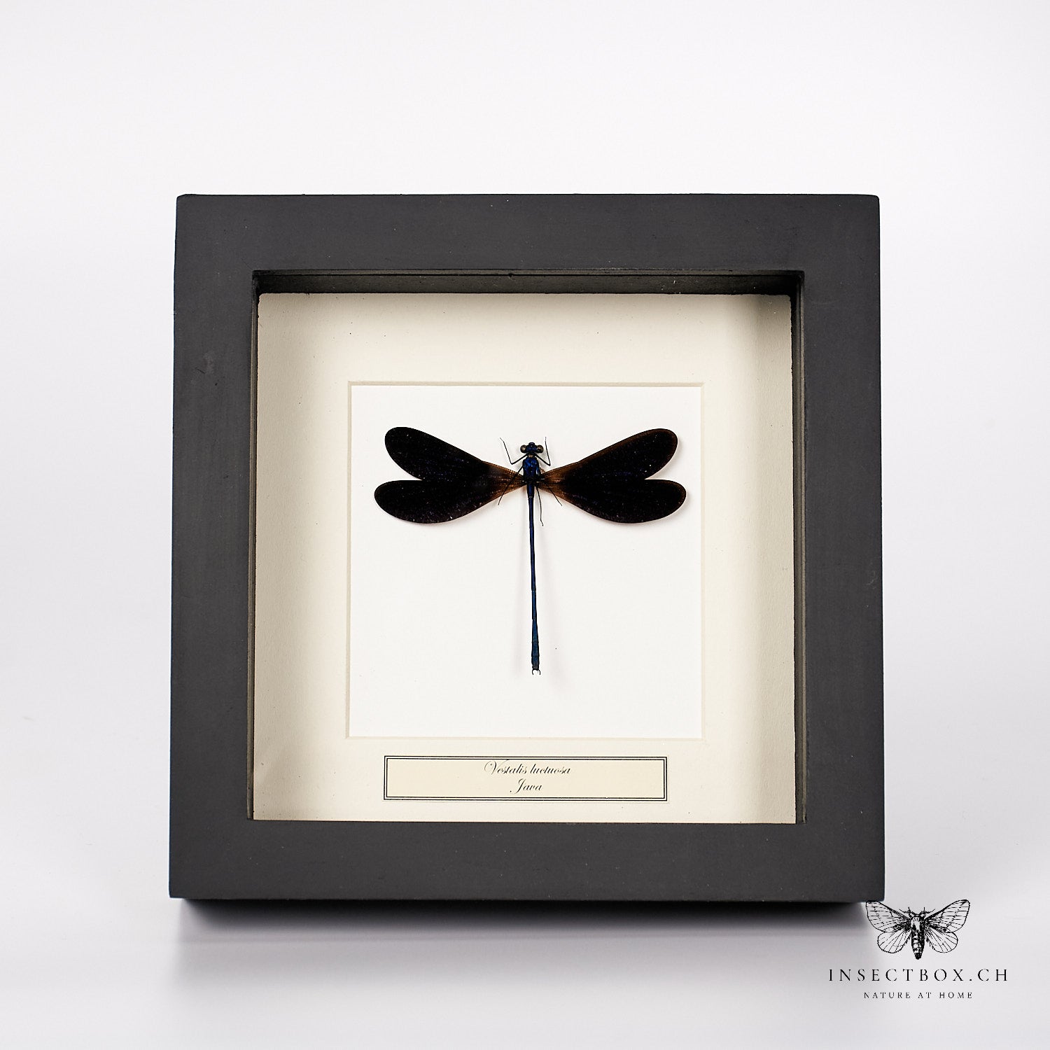 Vestalis luctuosa, also known as the black damselfly, belongs to the family Libellulidae. This dragonfly species is characterized by its dark coloring, which has earned it the name "black damselfly". The males and females have similar characteristics, but the males can be lighter and bluer in coloring.