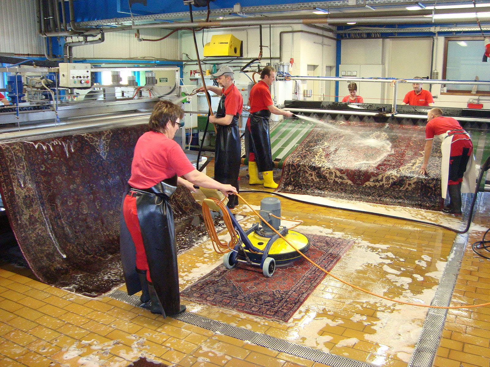 La qualité et l'écologie sont très importantes pour nous, car le nettoyage de tapis et rideaux est une question de confiance. C'est également ainsi que nous choisissons nos partenaires. Afin que votre tapis puisse à nouveau garantir un bon climat dans vos pièces, il est lavé uniquement avec de l'eau froide et un savon spécial biodégradable et développé spécifiquement pour les besoins de nos clients. On frappe. Les tapis très délicats et anciens sont nettoyés à la main. Pour les matériaux sensibles ou très sales, nous recommandons le lavage des sols et pour les textiles faciles d'entretien nous nous tournons souvent vers le lavage des tapis. Les tapis légèrement déformés sont serrés dans le cadre de la rame et ramenés à leur forme originale grâce à l'ajout de vapeur.