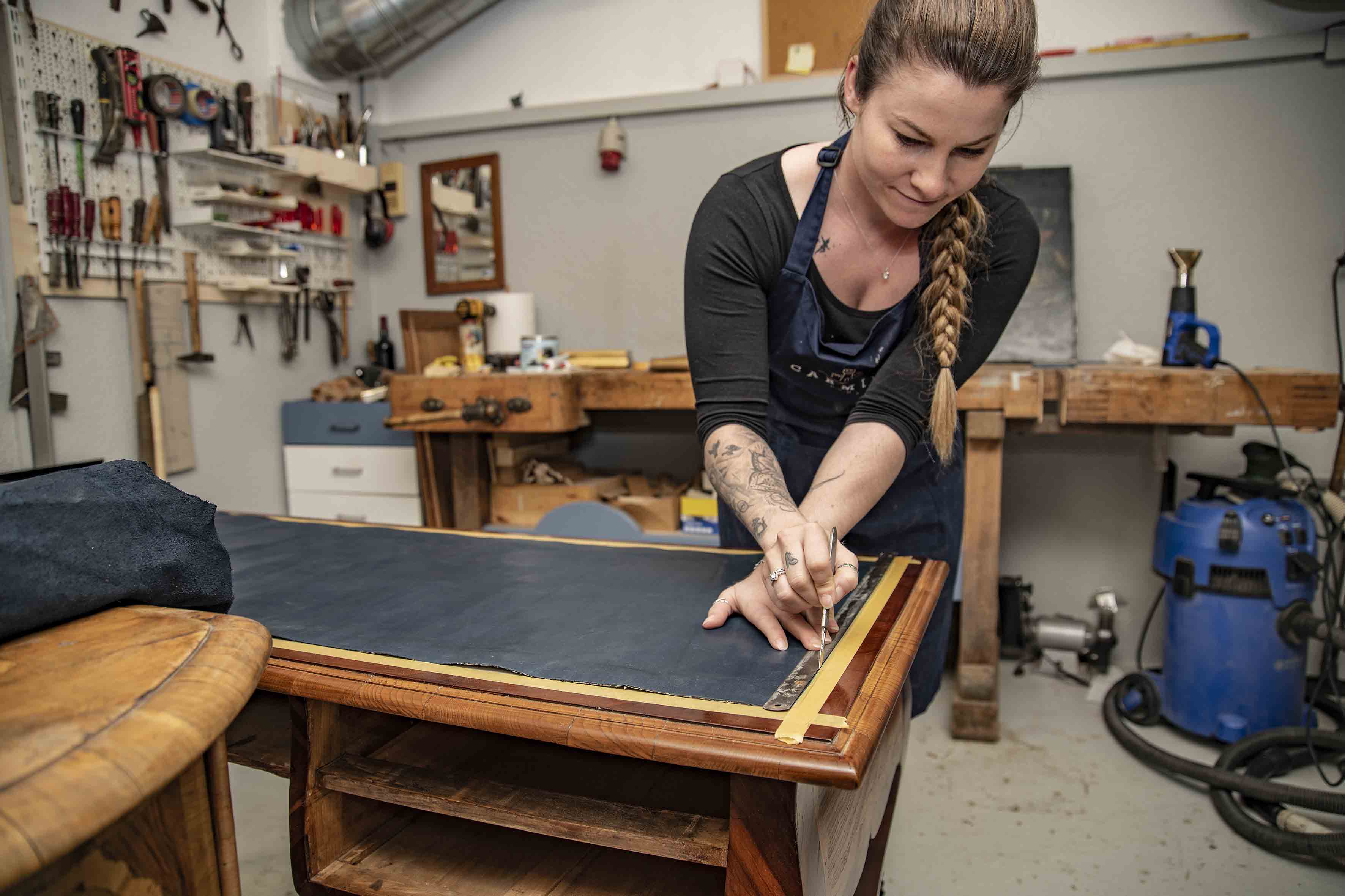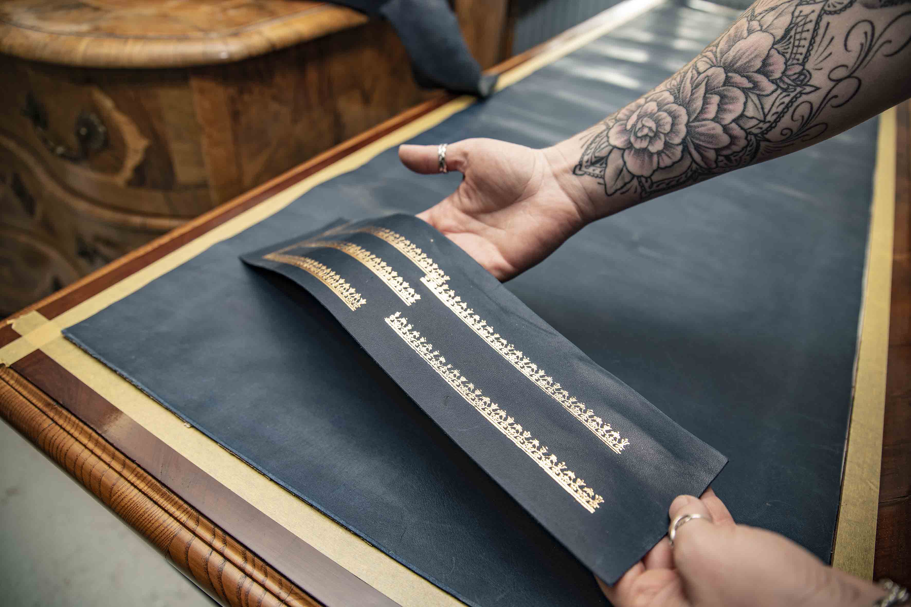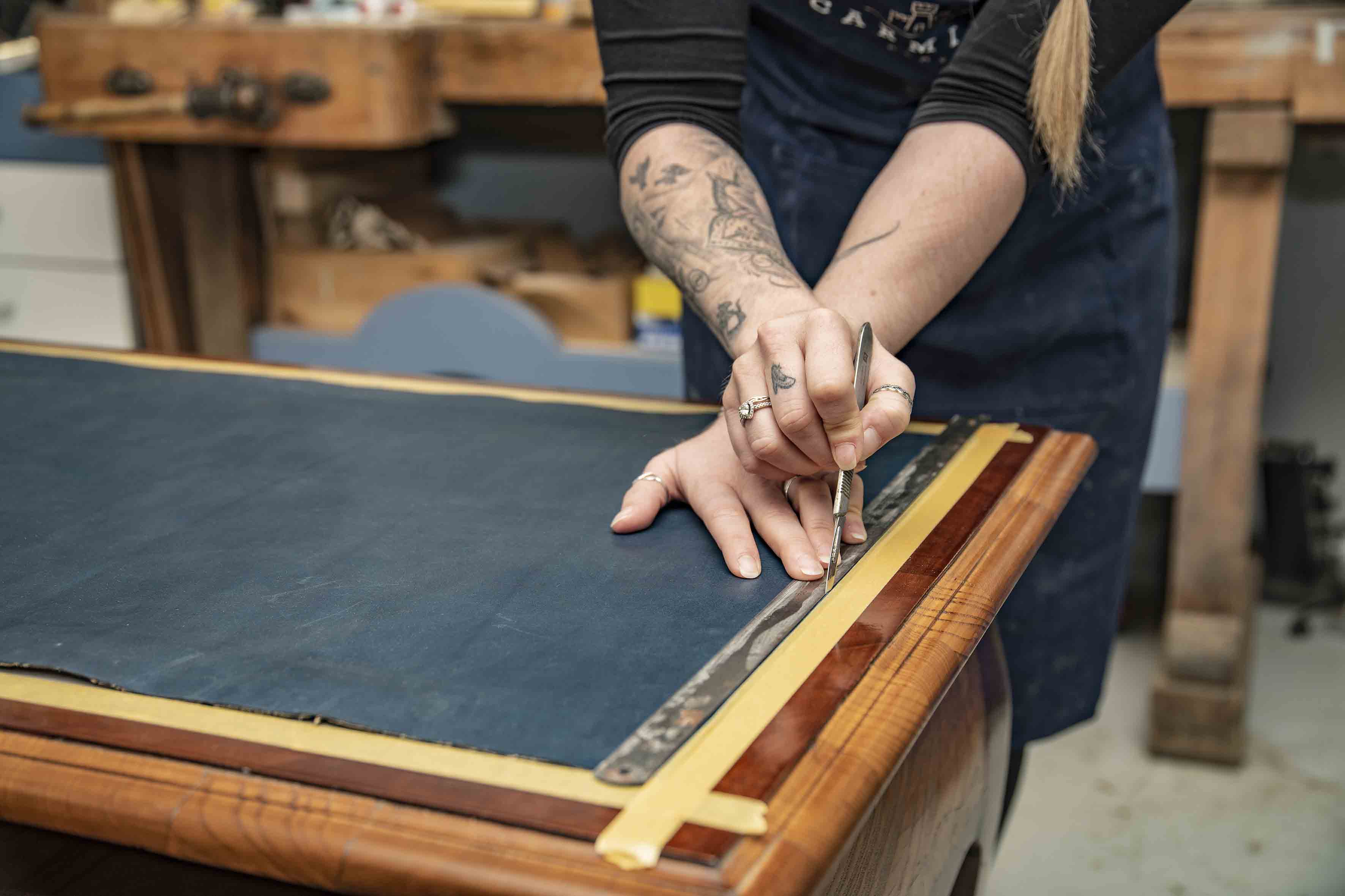 In unserem Atelier ersetzen wir Ihre spröden, fleckigen Leder-Schreibunterlagen. Sie wählen aus einer grossen Farbpallette exklusivem naturgefärbtem und gewachstem Ziegenleder aus. Mit Leidenschaft für meisterhafte Qualität schneiden wir das Leder zu und können es Ihnen auch gravieren.