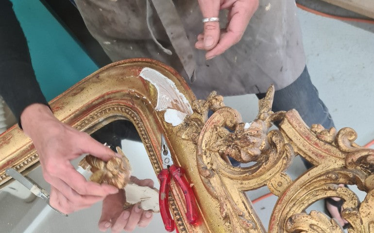 In der Vergangenheit bestand Stuck im Barock, Rokoko und im frühen 19. Jahrhundert hauptsächlich aus Kalkmörtel, der gelegentlich mit Gips gemischt wurde. Später, ab dem späten 19. Jahrhundert, wurde überwiegend reiner Gipsstuck verwendet. Der Kalk- oder Kalkgipsstuck wurde vor Ort hergestellt. In diesem Bereich konzentrieren wir uns hauptsächlich auf die Rekonstruktion von abgebrochenen Gipsteilen an Spiegeln oder Deckenverzierungen sowie die Reparatur von zerbrochenem Porzellan und Figuren. Dies beinhaltet auch die Farbangleichung und Retusche. Unsere Leistungen umfassen Reinigung, Freilegung, Reparatur von Rissen, Klebung und Sicherung sowie Retuschen und Farbanpassungen.